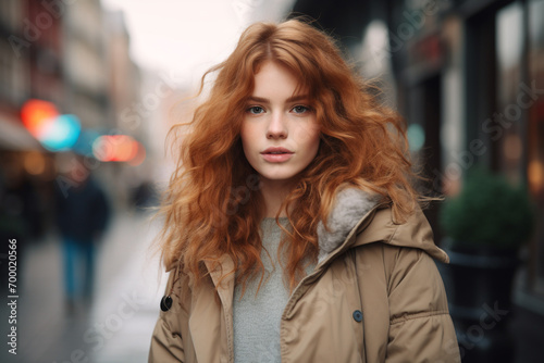 Fashion, leisure, make-up, hairstyle and lifestyle concept. Beautiful young woman outdoors urban street portrait. Gorgeous model looking at camera
