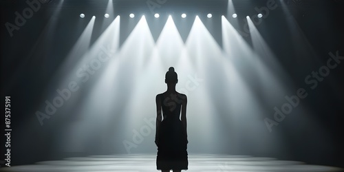 Fashion model confidently walking on the runway under the warm glow of spotlights at a fashion show. Concept Fashion, Runway, Confidence, Glamour, Spotlights