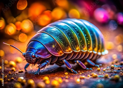 Fashion Photography: Close-Up of Pill Bug Molting Exoskeleton, Textured Surface, High-Fashion Editorial