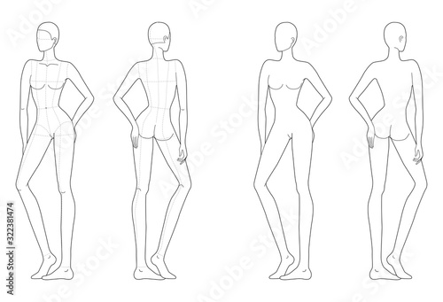 Fashion template of women in standing poses.