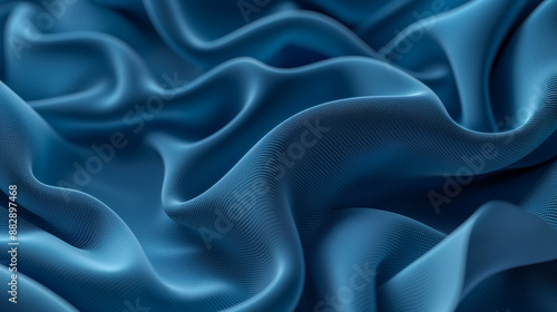 Fashion Wallpaper Abstract Modern Blue Background with Folded Cloth Macro and Wavy Layers. 3D Render Illustration