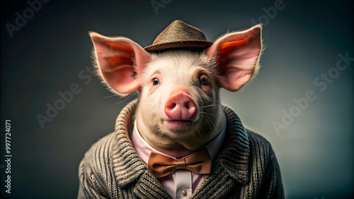 Fashionable pig posing for a portrait , pig, fashionable, stylish, chic, trendsetter, animal, portrait, posing, unique, quirky