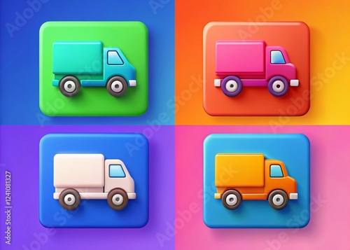 Fast Delivery Truck Icons: 24 Hour Free Shipping Service Stock Photo