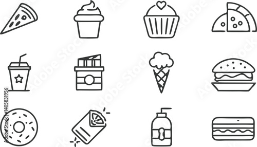 Fast Food Icons Pizza, Cupcakes, Ice Cream, Burgers, Drinks