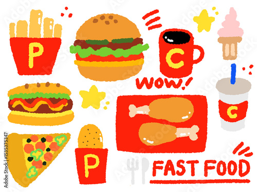 fast food illustration 햄버거 패스트푸드 감자튀김