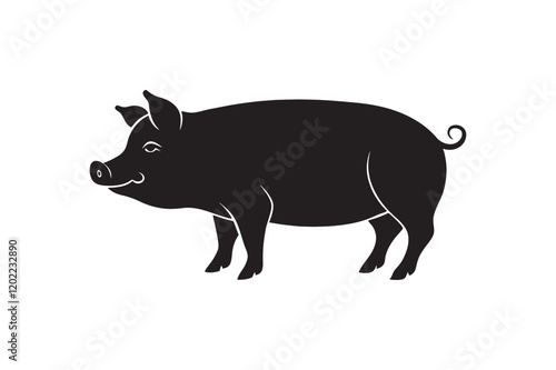 Fat pig logo silhouette on white background.