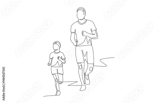 Father and son jogging. Dad and kid excercise concept one-line drawing