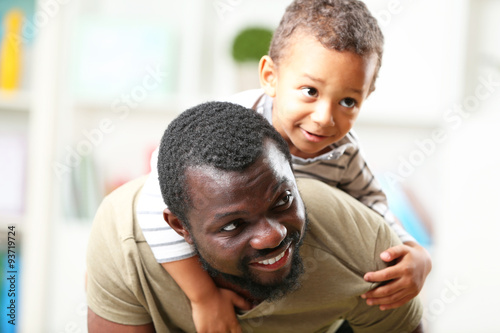 Father and son paying in the children room