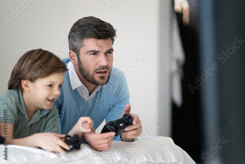 father and son playing video games