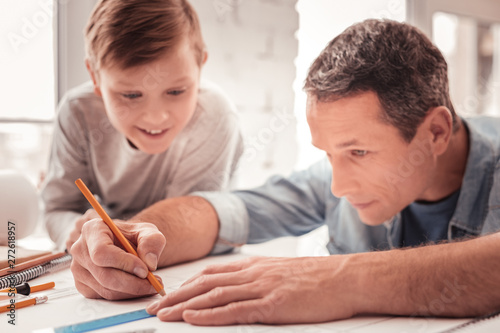 Father helping his son drawing geometrical figures