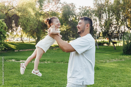 Father lifting daughter in a sunny park