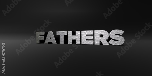 FATHERS - hammered metal finish text on black studio - 3D rendered royalty free stock photo. This image can be used for an online website banner ad or a print postcard.