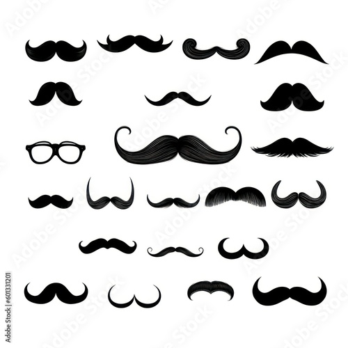 Father's day icons set isolated on white background. male mustache shapes in black and white. illustration. Generative AI