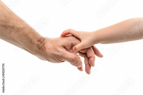 Fathers hand holding his child hand isolated on white, Fathers Day Illustration