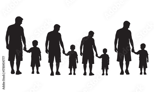 Fathers holding hands with children silhouette