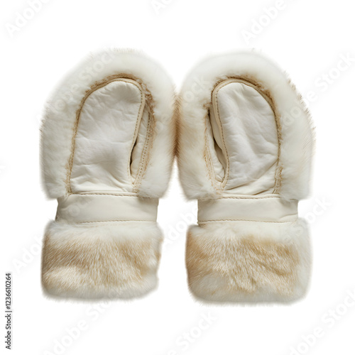 Faux Fur-Trimmed Mittens in Creamy White Isolated on Transparent Background
