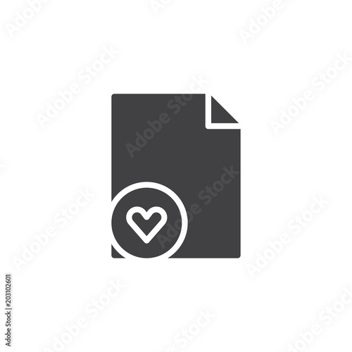 Favorite document file vector icon. filled flat sign for mobile concept and web design. Heart love page simple solid icon. Symbol, logo illustration. Pixel perfect vector graphics