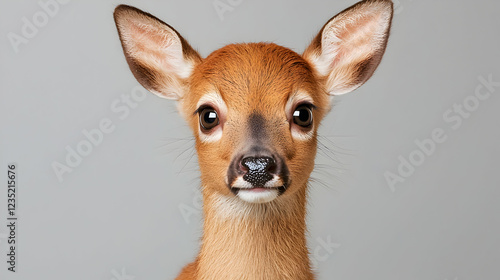 Fawn portrait, studio shot, neutral background, wildlife photography, conservation