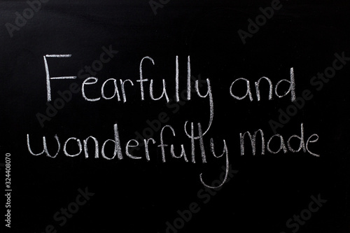 Fearfully and Wonderfully made written in chalk on a chalkboard