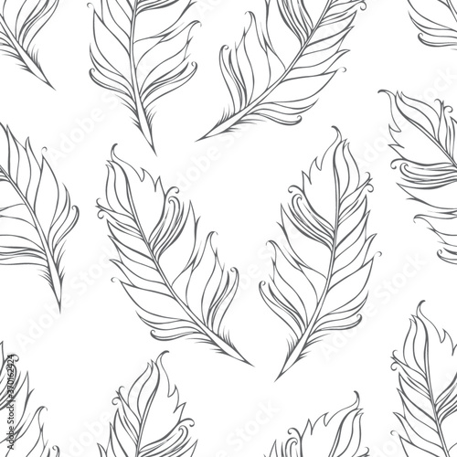 Feather isolated on Green background. Seamless pattern. Vector illustration