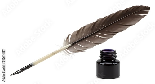 Feather Quill with Ink Bottle – Traditional Writing Set on White