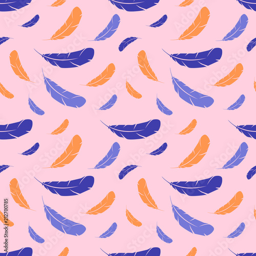 Feathers on a light pink background