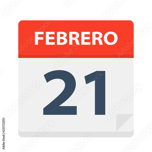 Febrero 21 - Calendar Icon - February 21. Vector illustration of Spanish Calendar Leaf