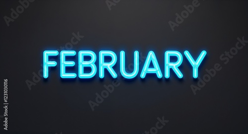 february word lettering with neon blue glow on plain black dark background