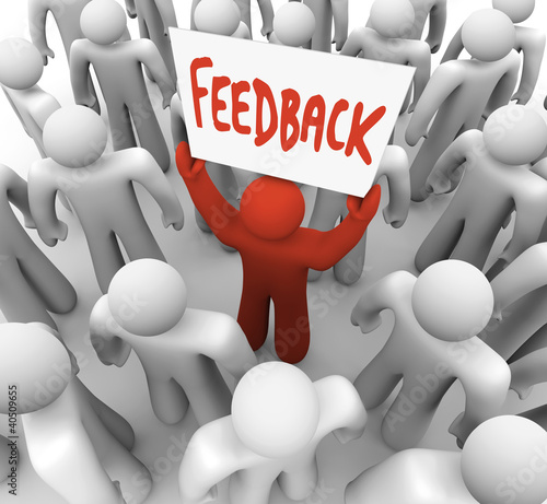 Feedback Man Holding Sign in Crowd Sharing Opinion