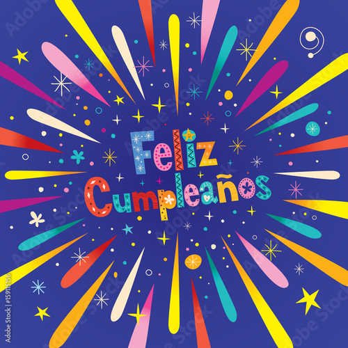 Feliz Cumpleanos - Happy Birthday in Spanish greeting card with burst explosion
