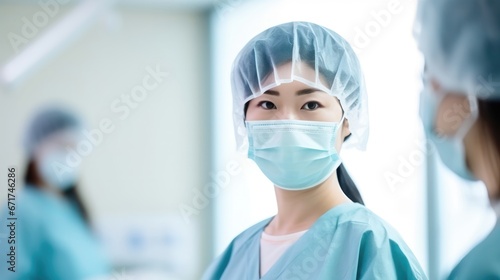 Female Asian Doctor or surgeons in operating room , Medical Performing Surgical Operation in Modern Operating Room