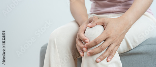 female athlete or spot woman having knee injury due to ligament inflammation, knee pain due to exercise, massage, muscle relaxation, rheumatoid arthritis, gait disturbance, rheumatoid arthritis