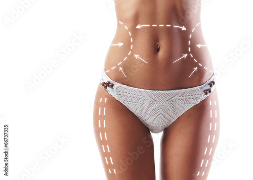 Female body with arrows. Plastic surgery concept.