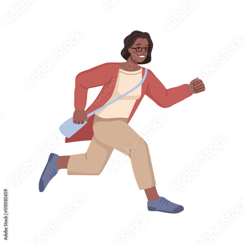 Female character running fast for sales and discounts in shops or stores. Isolated girl with bag hurrying up for offers in boutique, consumer and shopaholic hobby, vector illustration