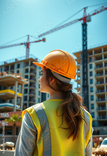 female construction worker with helmet