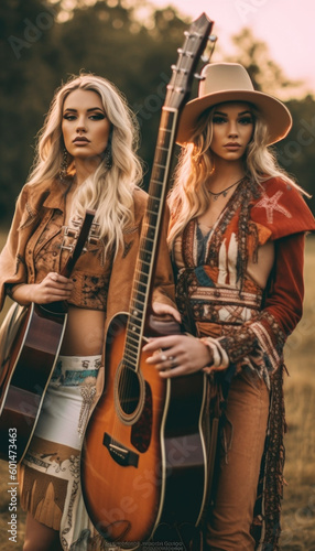 Female Country music performer, sing-a-song writer in USA. Generative AI illustrations