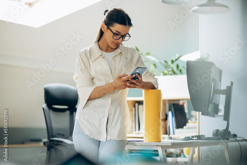 Female digital designer talking on the phone in an office