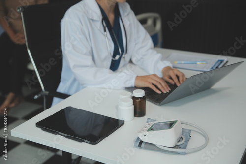 Female doctor explaining to patient results of model the process of patients. Diagnosis of diseases for Model Internal organ.