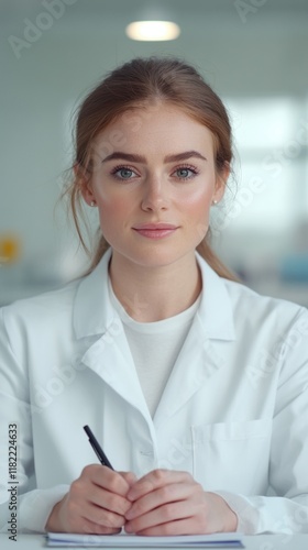 Female Doctor In White Coat Engaged In Medical Research In A Modern Clinical Setting With Focus On Healthcare And Innovation In Professional Environment With Natural Light