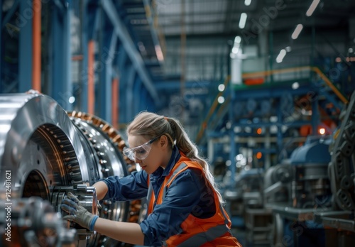 Female Engineer Working on Industrial Machinery. Worker's day, Labour Day.