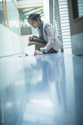 Female executive reading a document