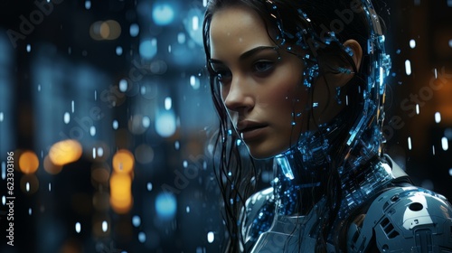 Female face and robot projection. Future technologies, Internet Business, Digital technology AI