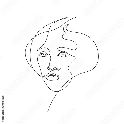 Female face drawn in one line. Continuous line.
