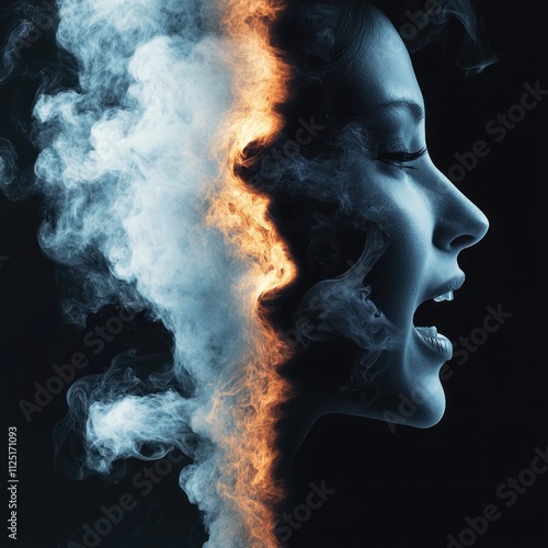 Female figure in stark fiery and smoky contrast