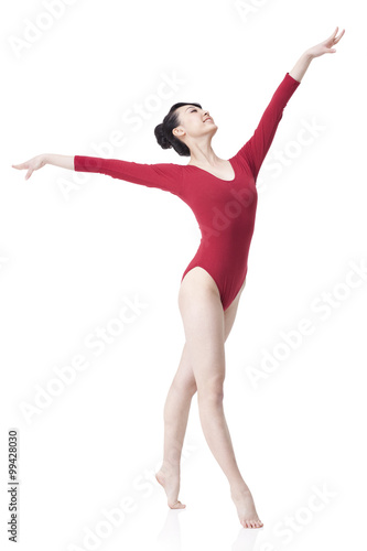 Female gymnast performing rhythmic gymnastics