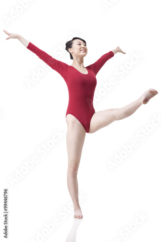Female gymnast performing rhythmic gymnastics