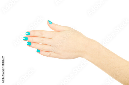 Female hand gestures on a white background