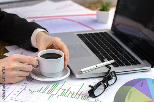 female hand with objects for doing business in the office