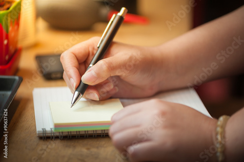 female hand writing on notepad