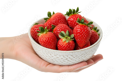 Female hands hold bowl with tasty strawberry, isolated on white background. Summer berry. Ai Generated Images